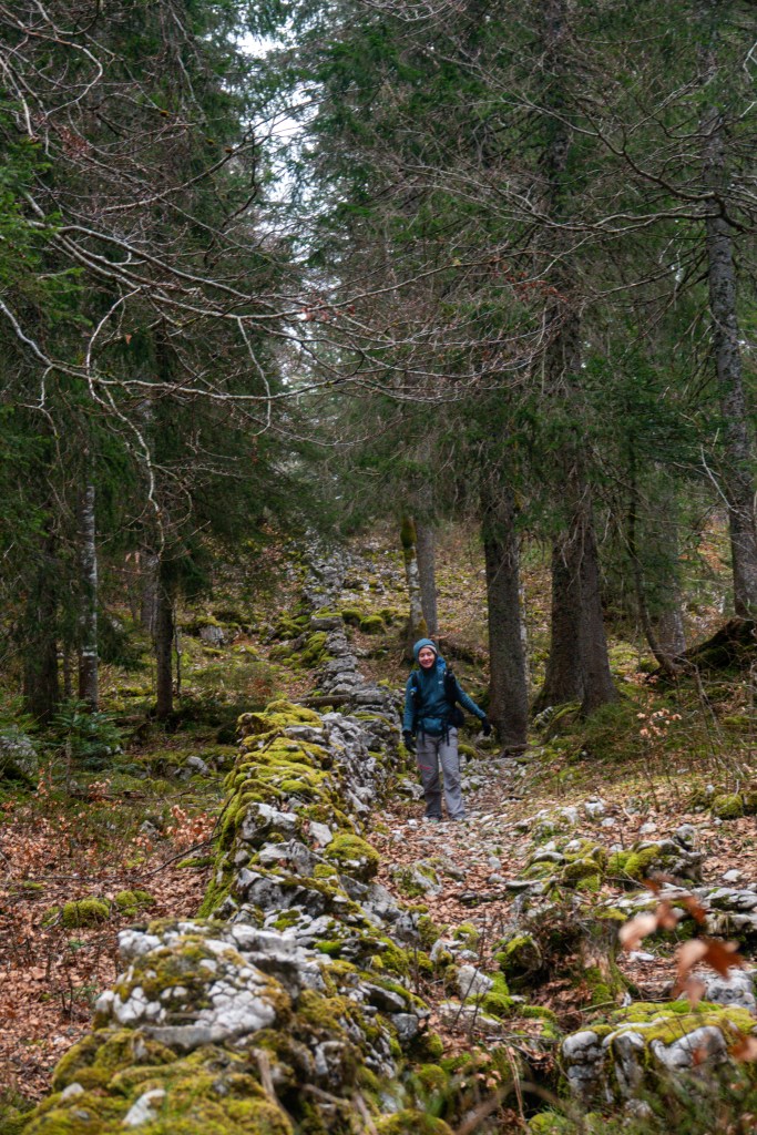- Toute la forêt est comprise dans le Parc Jura Vaudois, il s’agit donc de la protéger et de ne pas quitter les sentiers. Nous n’avons pas croisé de panneau spécifique mais il nous semble que le seul endroit où bivouaquer soit à proximité directe des refuges. Les lieux sont d’ailleurs parfaits pour cela : relativement plats, avec de quoi s’asseoir ou s’abriter en cas de force majeur.