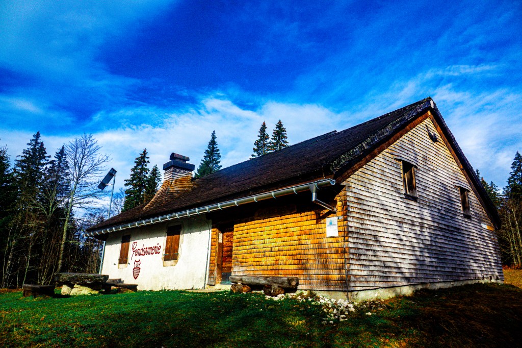 Autre particularité du Risoux : les refuges. Ils portent des noms étranges (Rendez-vous des Sages, La Marocaine, la Sauvageonne, Corne Au Fer) et forment un véritable quadrillage dans la forêt. Ils sont en priorité réservés aux services forestiers mais sont également à la disposition des randonneurs. Ils sont généralement cosy (donc petits mais confortables !) avec une table et quelques bancs. Idéal pour casser la croute mais trop petit pour y dormir (ce n’est de toute façon pas permis, sauf en cas de détresse).