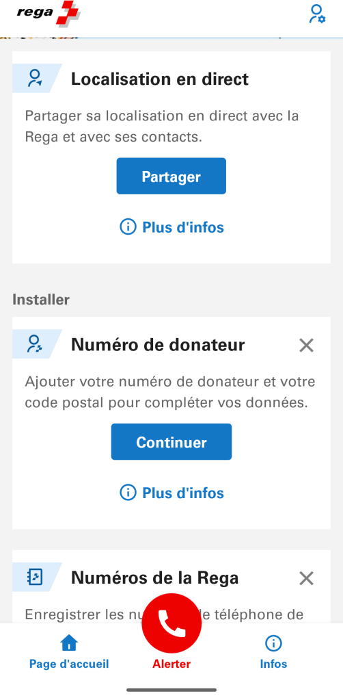 L’application de la Rega (Garde aérienne suisse de sauvetage) est une assurance : si la situation devait être dramatique, vous pouvez vous en sortir en un clic. La Rega est une organisation mythique en Suisse. Elle peut vous rapatrier où que vous soyez dans le monde. Elle intervient pour secourir des alpinistes en difficultés et des randonneurs un peu trop ambitieux. Personne ne veut se servir de cette application, mais elle est indispensable.